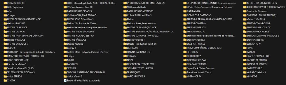 separadas por categoria, bg, músicas, fundos musicais/trilhas e efeitos. É uma mesclagem de material antigo e novo, servindo para qualquer tipo de produção.